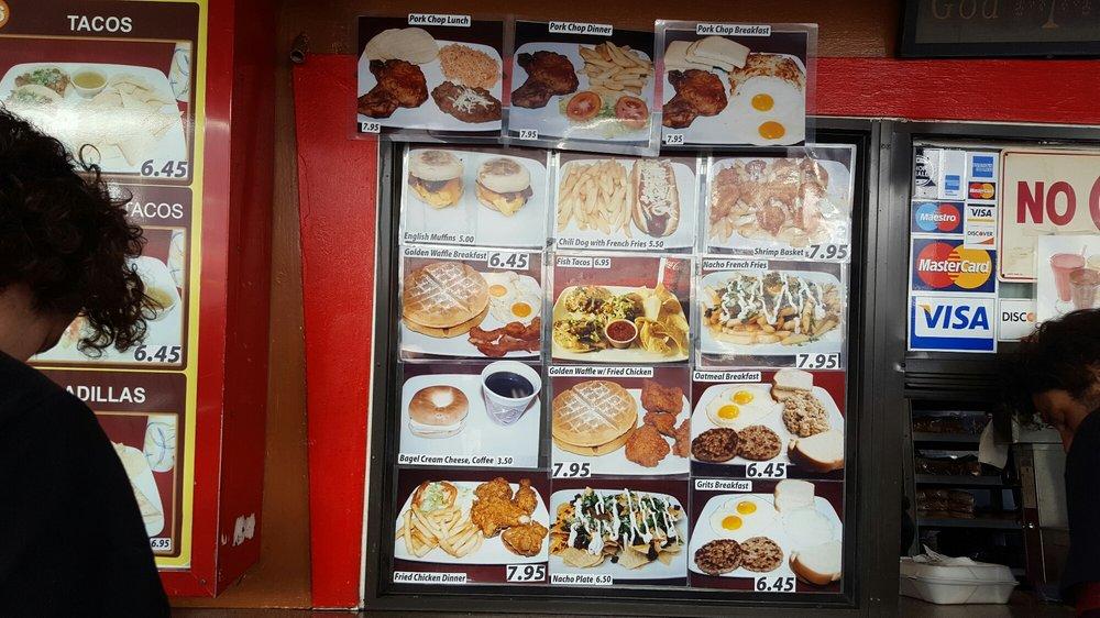 I don't know how it is during daytime, but night time is pretty iffy. Found myself here after a night of happy hours. This place has a small lot for your car, but once you leave the warmth of your car...this ain't Kansas anymore, Toto. All seating is outdoors. It's also right next to the sidewalk, so you will encounter all walks of life if you choose to dine-in. I'm not gonna fault the place for that, but just be prepared to be asked for change a couple times. Other than that, this place is open late and smells great (the food, not the....nevermind..).